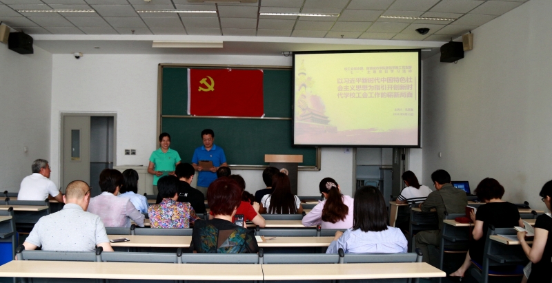 6月11日下午,为迎接“七一”党的生日的到来,校工会党支部与智慧城市学院通信系教工党支部在教学楼5034教室联合开展主题党日学习活动。旅游学院工会专职副主席孔繁潮应邀为两个支部的党员进行专题党课教育。校机关党委书记、工会主席肖芳,校直属单位党委书记、工会主席程雨琴和部分二级工会专兼职工会干部旁听了党课。