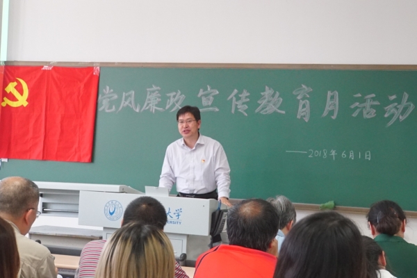 6月1日下午,管理学院在综实楼301开展了“不忘初心 牢记使命”学习教育专题党课活动,学院党委书记杨积堂作题为“弘扬宪法精神 树立宪法权威”的专题讲座,管理学院学生党员、机关党支部党员近100人参加了党课学习。校党建督导组专家黄海洋、高玉培参加活动。