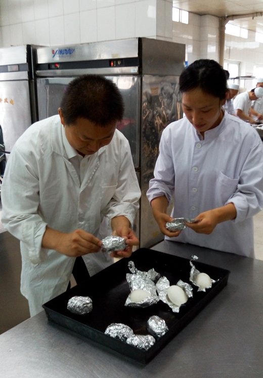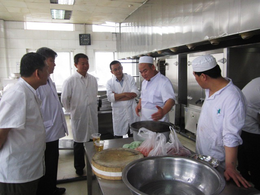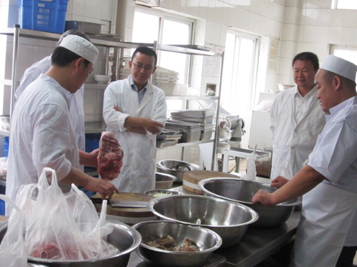 菜品研发小组狠抓研发创新,科学调整菜品营养搭配。此次清真菜品研发培训“请进来”校外高级厨师为菜品研发小组成员进行现场操作培训,周副书记同中心的技术骨干一起体验了菜品制作的全过程,并从就餐者的角度提出了修正的意见。