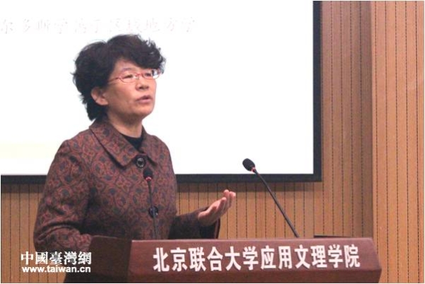 北京联合大学应用文理学院院长兼北京学研究基地主任张宝秀围绕“北京学研究新进展”进行主旨演讲。(中国台湾网张洁 摄)