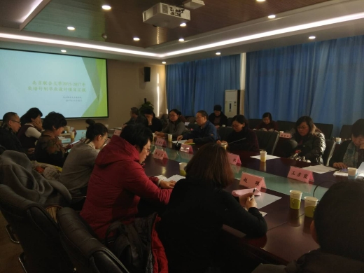 会议现场 教务处实践教学科科长钟丽首先介绍了我校2015至2017年获批北京市高水平人才交叉培养实培计划毕业设计项目总体情况。连续两年因指导实培计划毕业设计(科研类)项目而获得校级优秀毕业设计指导教师称号的师范学院教师李小贝分享了自己在项目申报及具体指导过程中的经验。生物化学工程学院教务处副处长王暄代表学院介绍了在项目的申报动员、重点引导、规范管理等方面的做法以及对毕业设计(创业类)项目实施方面的一些举措。其他学院也分别汇报了各自的项目实施情况。参会人员还对目前项目申报和运行中存在的问题进行了充分讨论。