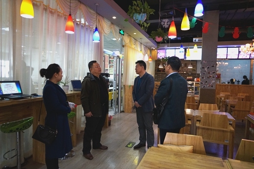 参观学生创业咖啡厅 交流会议结束后,在孙桂生副院长的陪同下,梁锋副院长一行实地参观了学院新改造升级后的经贸实训中心实验室,考察了大学生创新创业孵化基地的入驻企业和新建成的创新创业训练室。 |