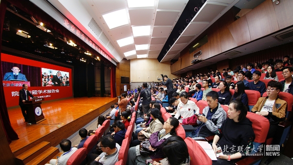 4月26日,在我校北四环校区举办了院士专题学术报告会,特邀请了中国人工智能学会理事长、中国工程院院士、北京联合大学机器人学院院长李德毅院士,清华大学自动化系教授、中国工程院院士、北京联合大学机器人学院特聘教授戴琼海院士作报告。报告会现场座无虚席,氛围良好。
