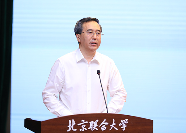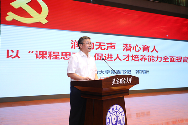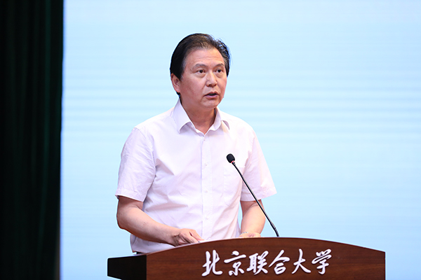 6月15日,由市委教育工委主办,北京联合大学承办的北京高校“课程思政”现场交流会在我校北四环校区召开。市委教育工委常务副书记郑吉春出席会议并讲话,市委教育工委委员、市教委副主任黄侃主持了会议,来自北京大学、中国人民大学、北京师范大学、中国农业大学、北京化工大学等56所北京高校主管思政、教学工作的校领导120余人参加了会议。