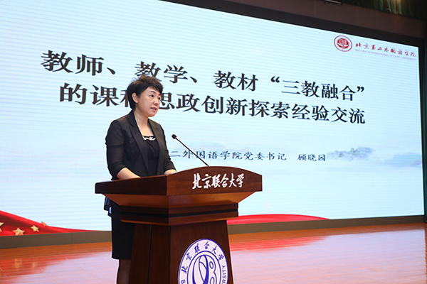 韩宪洲作交流发言 韩宪洲谈到,十八大以来,特别是全国和北京高校思想政治工作会议以来,学校党委全面落实管党治党、办学治校主体责任,持续深入学习习近平总书记讲话精神和会议精神,并将其融入学校教育教学和人才培养,使其落地生根、开花结果,形成了生动实践。其中,“课程思政”作为学校构建全员全程全方位育人格局、系统化落实立德树人根本任务,全面提高人才培养能力的根本性举措,已从“星星之火”渐成燎原之势,成为学校培养担当民族复兴大任和服务北京“四个中心”建设以及国际一流的和谐宜居之都建设重任的时代新人的新理念、新方法、新特色。 韩宪洲介绍,学校全方位行动,校党委把学习贯彻全国和北京高校思想政治工作会议精神与学习党的十九大、北京市第十二次党代会以及学校第五次党代会精神相结合,坚持相互衔接、融会贯通,同时,认真调研学习上海等地及其他兄弟院校先行先试的经验做法,制发了实施意见,建立了校党委宣传部牵头抓总,各院系(部)主导推进,各职能部门协同配合,专任教师具体落实的工作格局,为系统推进“课程思政”建设制定了“任务书”,绘好了“路线图”,确定了“时间表”,确保了顶层设计的科学性、系统性、前瞻性。同时,协同推进学校所承担的北京高校思想政治工作难点攻关项目《应用型大学推进课程思政建设的研究与实践》与北京高校第二批党建难点项目支持计划《加强应用型大学教师党支部建设的实践研究》这两个项目开展理论和实践研究,为党委决策提供有力支持。 韩宪洲进一步介绍,学校有步骤推进,党委根据旅游、理工、特教、艺术等不同特点,分类推进,突出特色,初步形成了旅游学院“课程思政红旗渠”、艺术学院“溯源红色”,应用文理学院“教师责任制”等建设品牌。党委组织召开了全校课程思政的推进会,及时开展经验总结和交流。教务处体现课堂育人的理念,既专注专业知识教学,又深入挖掘课程内在的育人因素,奠定学生成长的专业基础和思想基础,并将其明确写入课程大纲的要求。校人事处将课程思政开展情况纳入教学单位和教师个人绩效考核的内容;校党委组织部把教师党支部推进课程思政建设情况纳入教师党支部考核指标体系。校院系结合课程思政建设,对教师进行思想发动,开展课程思政纳入新入职教授、副教授培训中,引导教师在教授学生科学知识的同时,把社会主义核心价值观和实现民族复兴的责任融入课程教学之中,发挥好思政的价值引领作用。 韩宪洲表示,虽然学校的办学实力与北京市政府的要求和北京人民的期待还有差距,存在不足和短板,但北京联合大学正青春,能奋斗,学校深入学习贯彻习近平新时代中国特色社会主义思想和十九大精神,继续坚持以首善标准,深入推进和完善课程思政建设,促进人才培养能力的全面提高,努力建设高水平、有特色、北京人民满意的城市型、应用型大学,为北京四个中心建设和国际一流和谐宜居之都建设作出更大的贡献。 北京化工大学党委书记王芳、中国地质大学(北京)党委书记王鸿冰、北京林业大学党委书记王洪元、北京第二外国语学院党委书记顾晓园、北京服装学院党委书记马胜杰结合学校的特色与优势,通过例举示范课、公开课或观摩课等不同形式,先后分享了课程思政建设的经验和做法,彰显了学校特色。