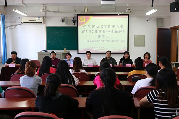 6月13日下午, 师范学院基础教学部教师党支部全体党员与计算机专业17级2班全体同学在2608教室以一次特殊的学习交流方式拉开了教师党支部与学生班级牵手共建的启动仪式,学院党委书记陈志刚受邀参加了活动。