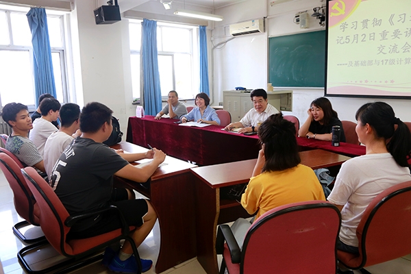 会议现场 活动包括两大主题,首先支部书记叶磊老师介绍“牵手”项目及计划开展的工作;第二主题,师生分三组进行了学习习近平总书记5月2日在北京大学重要讲话精神的交流。交流过程中大家谈感受、谈使命、话责任,老师还就同学们提出的一些困惑进行了解答和分享,一个多小时的交流进行的十分热烈,最后每组派一名同学代表进行了交流汇报。同学们围绕习总书记对青年提出的爱国、励志、求真、力行四点希望,表达了肩负使命、刻苦钻研的责任担当以及从现在做起,增强师范生综合素养和能力的决心。  师生交流