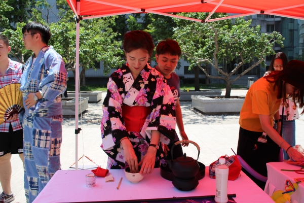 活动分成三个主体项目,有日语系学生歌曲表演,有游戏通关兑奖,也有茶道和气球表演。活动现场的工作人员全部身着日本浴衣,在视觉上将日本特有的美丽与端庄,以此拉近同学们对日本文化的距离。