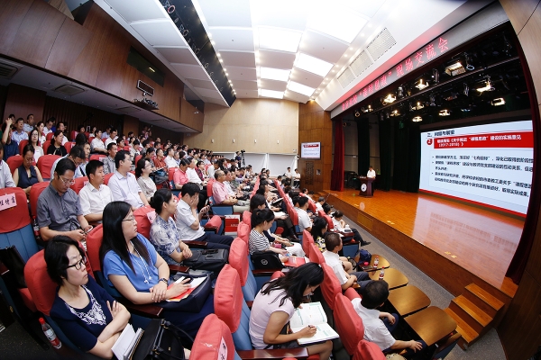 6月15日,由市委教育工委主办,北京联合大学承办的北京高校“课程思政”现场交流会在我校北四环校区召开。市委教育工委常务副书记郑吉春出席会议并讲话,市委教育工委委员、市教委副主任黄侃主持了会议,来自北京大学、中国人民大学、北京师范大学、中国农业大学、北京化工大学等56所北京高校主管思政、教学工作的校领导120余人参加了会议。
