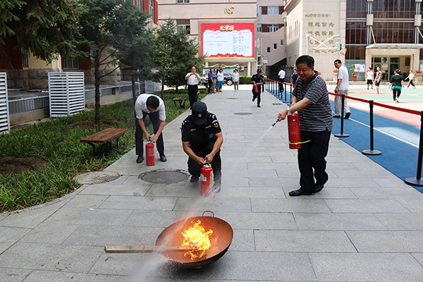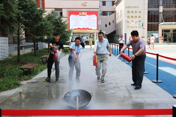 6月19日中午,师范学院消防技能运动会首日的比赛在操场举行。学院领导、教职工、后勤保障人员近50人参加了活动。