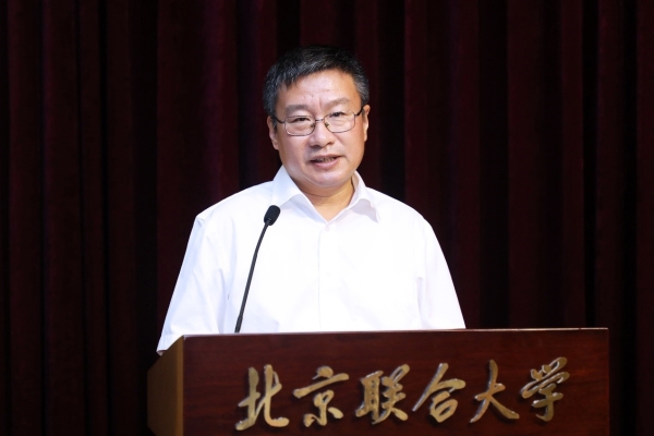 校党委书记韩宪洲讲话 北京师范大学学生会主席胡文杰代表兄弟高校学生会组织致辞,他表示北京联合大学学生会与北京师范大学学生会应该加强联系,互相学习,为两校学生会组织更美好的明天共同奋斗。