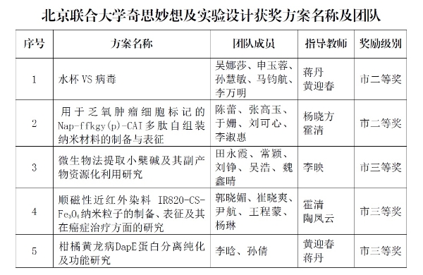 6月24日下午,第四届北京市大学生生物学竞赛奇思妙想决赛及实验设计决赛在中国农业大学举行,来自12所高校的35支队伍了参加了决赛。我校生物化学工程学院两个团队进入决赛答辩,经过激烈角逐,荣获奇思妙想市级二等奖1项,实验设计竞赛二等奖1项,另有3个团队获实验设计竞赛三等奖。