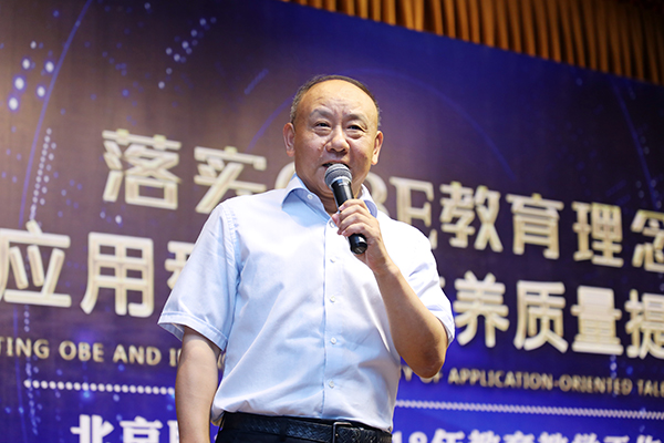 李学伟校长作主题报告 杨宜副校长作了《落实成果导向,深化应用型人才培养模式改革》的工作报告。杨宜副校长梳理解读了基于成果导向的应用型人才培养体系的构建逻辑,进而结合成果导向教学设计的关键要素。对近五年以来学校教学工作成绩进行了总结回顾。充分肯定了学校在专业内涵建设、多样化人才培养模式改革、课程建设与教学改革等方面取得的显著成效。同时也指出了教育教学改革的重要举措的落实还存在不到位的问题,实践教学、教师执教能力和教学资源建设、教学过程管理、学生学习效能、质量监控等方面需要进一步加强。最后,杨宜副校长提出六个方面的重点工作:深入学习OBE教育理念,提升应用型人才培养质量;以专业认证为抓手,推进专业建设质量提升计划;加强应用型课程建设,推进课程质量深化计划;坚持学生为中心,推进学生学业发展促进计划;深化产教融合,推进产教融合发展计划与创新创业教育计划;完善教学质量标准,推进人才培养质量提升。