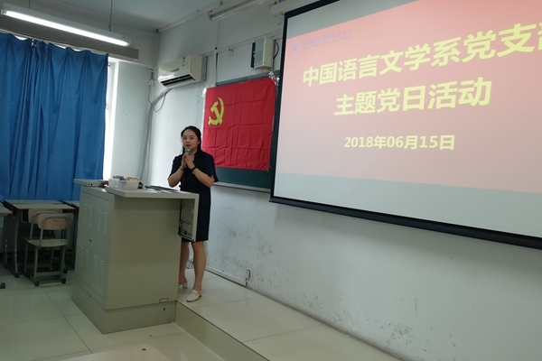 林秀平作讲座 支部书记周小琴为师生们分享了中文系走向教师岗位的17届优秀毕业生教育案例。结合学习《高校教师师德禁行行为“红七条”》与《中小学教师违反职业道德行为处理办法》,与会师生围绕中文系育人目标、师德师风建设、师范生日常行为养成展开了讨论。 校督导组专家郭淑敏与学院党委副书记张奕对本次党日活动进行总结与点评。郭淑敏指出党支部要充分发挥好战斗堡垒作用,希望中文系党支部要将党建工作继续与学院学科建设及学生中心观念结合起来,引领教师以德施教,潜心育人,既要精于“授业”、“解惑”,更要以“传道”为责任和使命,好老师应该做中国特色社会主义共同理想和中华民族伟大复兴中国梦的积极传播者,让一代又一代年轻人都成为实现我们民族梦想的正能量传播者。张奕希望中文系党员教师与学生党员成为真正的先锋,用师德师风去涵养同学,用优秀品质去感染身边的人,让更多的师范生成为优秀教师。