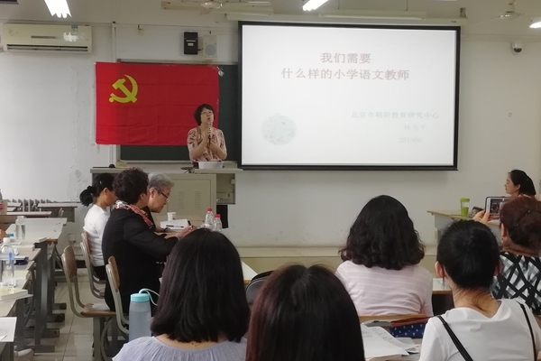 活动现场 活动邀请北京市朝阳区教育研究中心教研员林秀平作《“我们”需要什么样的小学语文教师》专题讲座,林秀平教研员以解读小学语文课程目标入手,分析了课堂实践中达成课程目标的路径与方法,并与参会师生交流探讨师范生核心素养培育的相关问题,互动反响热烈。