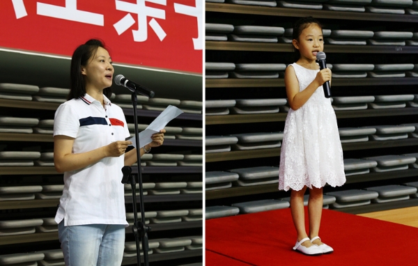 亲子运动全家福 校工会主席付晨光讲话中强调,家庭是个人幸福的源泉,每一个孩子都是家庭的未来和国家的希望,孩子的成长需要家长为他们创造健康快乐、和谐向上的环境,希望教职工们通过参加活动,增进与家人之间的情感交流,希望我们的教职工在培育孩子的过程中要重视言传身教,培育良好家风,构建和谐家庭;同时希望通过亲子活动的平台,能有效促进全校青年教职工之间在学科专业上的交流和合作,推动学校各项事业发展。 艺术学院教师邹加倪代表参加活动的教职工发言,她对学校为教职工提供这样的亲子活动平台表示感谢,也呼吁教职工们在紧张的工作之余多留时间陪伴孩子和家人,营建幸福小家。 校工会王莹老师之女林梓妍代表参加活动的教职工子女发言。