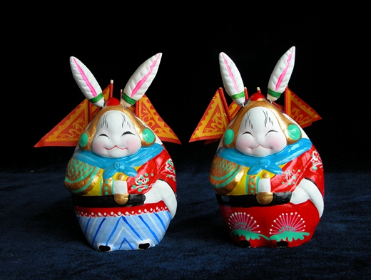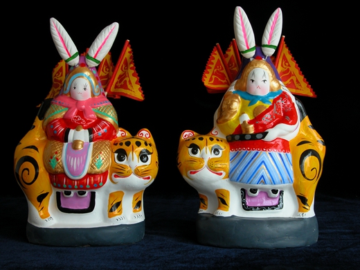 北京“吉兔坊”泥彩塑代表作品《坐虎对兔儿爷》
