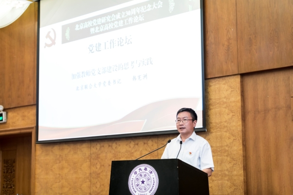 6月25日,北京高校党建研究会成立30周年暨北京高校党建工作论坛在清华大学召开。  会议现场 会上,包括我校在内的4所高校党委书记在会上作交流,分享高校党建工作经验。韩宪洲发言的题目是《加强高校教师党支部建设的思考与实践》。他结合学校在北京高校第二批党建难点项目建设的实际情况,从学校施行“三个到位”,确保教师党支部“自转”有动力;搭建“三个平台”,确保教师党支部“公转”有能力;推行“三项措施”,确保教师党支部争先有活力等三个层面,介绍了学校贯彻落实全国和北京高校思政会精神,加强新形势下教师党支部建设所做的思考和探索。  韩宪洲发言 市委教工委常务副书记郑吉春同志出席会议并讲话,他希望高校党建研究工作要牢牢把握正确政治方向,始终聚焦高校党建重点难点问题,大力提升党建研究工作质量。同时,郑书记对近期高校党建重点工作进行了部署。 北京高校党建研究会各成员单位理事、监事,北京高校党委书记、副书记、组织部长等130余人参加会议。我校党委常委、组织部部长王玮参加了会议。 |