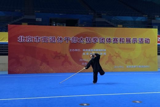 6月26日下午,由中共北京市委组织部、北京市老干部局主办的北京市离退休干部太极拳团体赛和展示活动在北京工业大学奥林匹克体育馆开幕。此次活动共有来自各区县36支代表队伍参赛,同时有来自教育系统、政法系统及各区县19位太极拳爱好者进行个人展示,11支队伍进行集体展示。我校选派商务学院退休教授张秀国展示了曾获第九届中国焦作国际太极拳交流大赛男子E组太极棍冠军的陈氏太极棍套路,一招一式展现出太极的无穷魅力,充分展示了我校老同志乐观健康的阳光心态和积极向上的精神风貌,各位评委对太极棍展示的精湛技艺表示赞赏和高度好评,现场观众报以热烈的掌声。