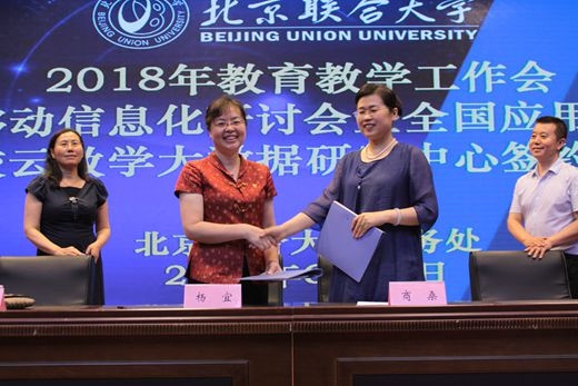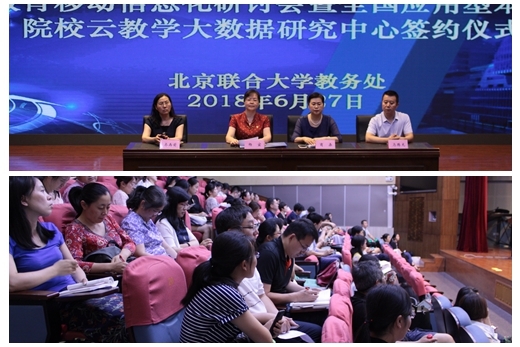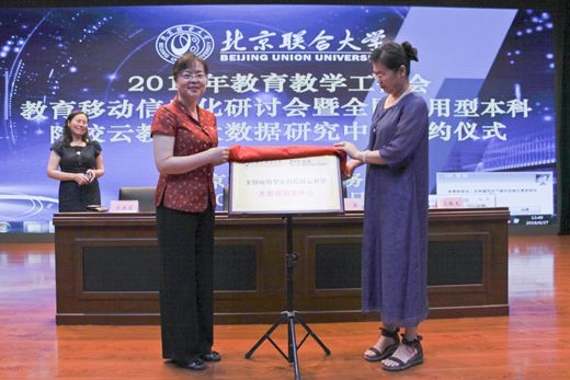 商桑院长作报告 会上,还举行了全国应用型本科院校云教学大数据研究中心签约仪式和揭牌仪式。