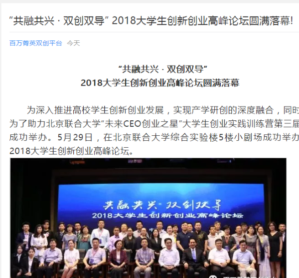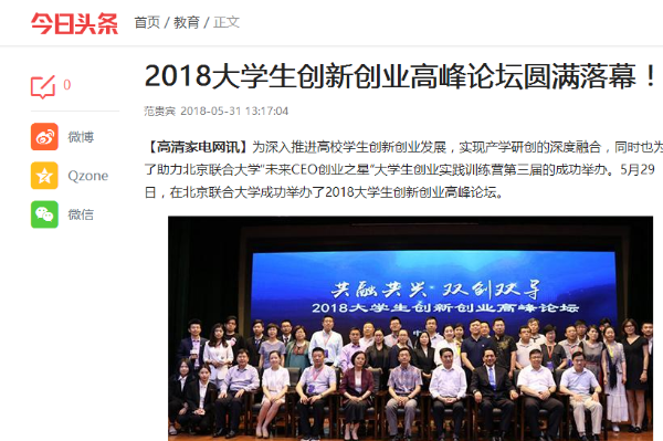 由管理学院参与承办的2018大学生创新创业高峰论坛取得圆满成功,在社会上引起广泛关注,本次活动受到中国青年网财经、环球网、凤凰网等二十多家媒体的联合报道,提升了管理学院社会影响力。 管理学院作为北京联合大学创新创业教育的先锋基地,依托校企联合共建的东软创业学院,先后成立的“蜂巢”学生创业孵化空间,累计入孵项目近30个,学生团队注册公司5家,在创业板上市公司1家,并与校团委联合主办“未来CEO创业之星”系列活动三届,惠及全校近100名创业者。