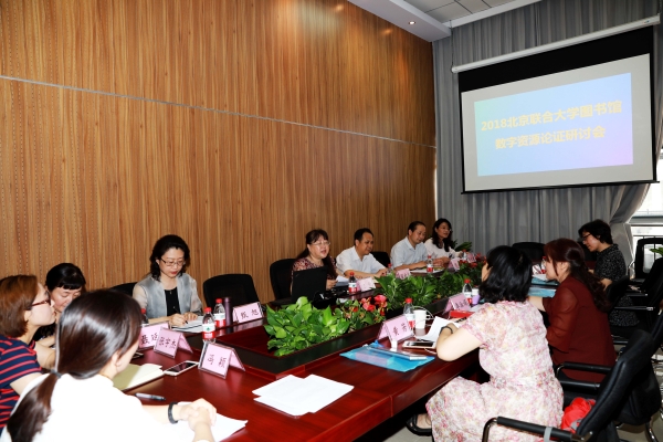 为了推进我校图书馆数字资源建设,更好服务教学科研, 6月5日,图书馆在新馆104会议室召开了2018年数字资源论证研讨会,邀请北京科技大学图书馆季淑娟、首都师范大学图书馆熊丽、首都医科大学图书馆黄芳、北京第二外国语学院杨梅等四位馆长专家到会,我校图书馆班子成员和参考咨询部相关人员参加研讨会。会议由我校图书馆王彤馆长主持。